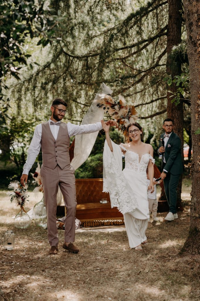 Morgane et Emilien ont imaginé une journée à leur image, entourés de leurs proches, dans un cadre naturel où tout s’est déroulé avec fluidité. Entre éclats de rire, gestes spontanés et lumière de fin de journée, chaque instant racontait une histoire.